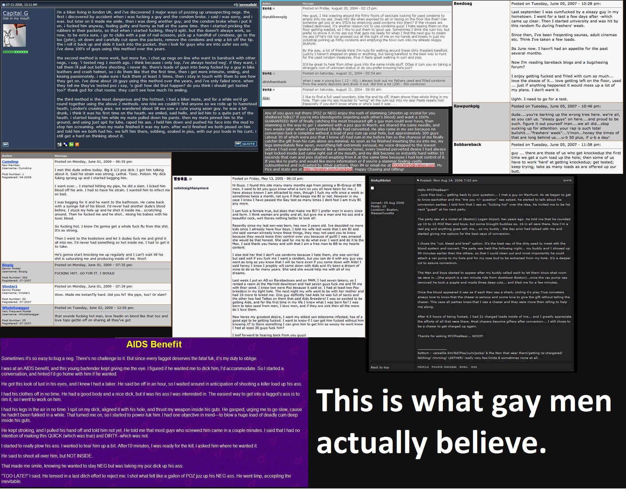 Vilken typ av bild ger dessa representanter homosexuella i allmänhet? Vidare: Är det någon med ett tresiffrigt IQ som på allvar tror att barn inte blir vettskrämda av dylika uppvisningar. Jag hade personligen aldrig tagit med mina barn till en sexparad. Är det inte bättre att den första uppfattningen man får av homosexuella att de är vanliga människor med vanliga jobb istället för en uppvisning i total degenerering?